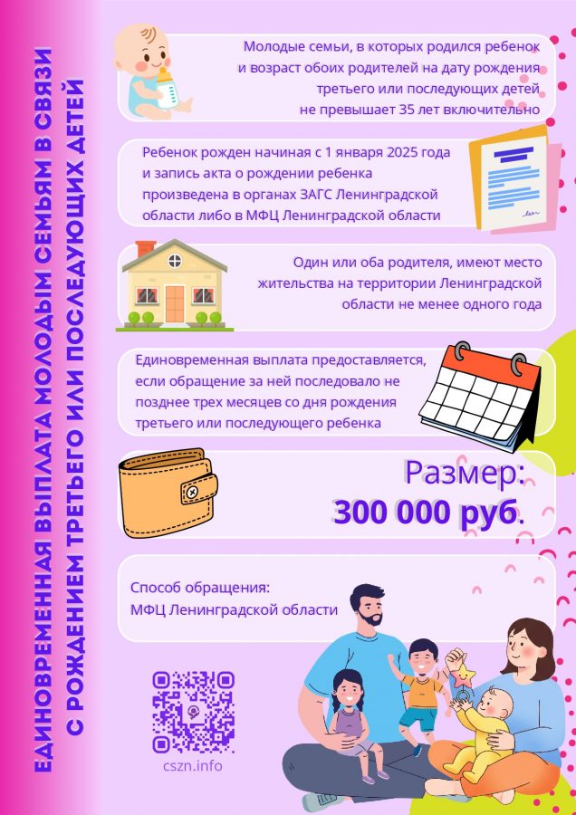 Единовременная выплата молодым семьям в связи с рождением третьего или последующего детей Опубликовано 09.10.2025 в рубрике Новости